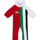 • Detail: Plain romper with UAE flag shape pattern, front design with full buttons, sleeves and foot holes are equipped with elastic