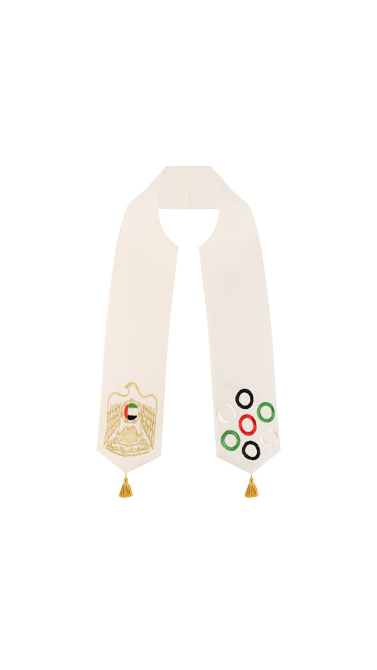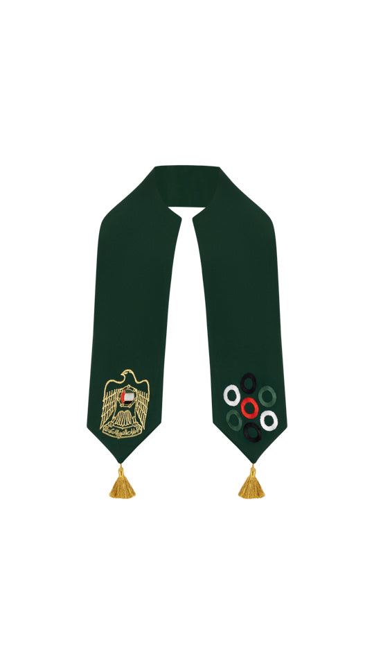 Introducing our exquisite "Little Falcon Princess Shawl" - a truly enchanting piece designed exclusively for your little girls. This 42-inch masterpiece is a celebration of the United Arab Emirates' rich heritage and symbolism, making it the perfect accessory for your precious one. Elegant Length: At 42 inches in length, this shawl drapes gracefully, ensuring your little princess stays warm and stylish. Intricate Embroidery: Crafted with meticulous attention to detail, both sides of the shawl feature intricate embroidery. One side showcases the majestic Falcon, the national animal of the UAE, in all its regal glory. The other side is adorned with seven beautifully embroidered circles, representing the seven emirates of the UAE. Triangle-Edged Beauty: The edges of this shawl are elegantly pointed in a triangle shape, adding a touch of sophistication and uniqueness. Each corner is embellished with a traditional tarboush, a symbol of cultural heritage and pride.