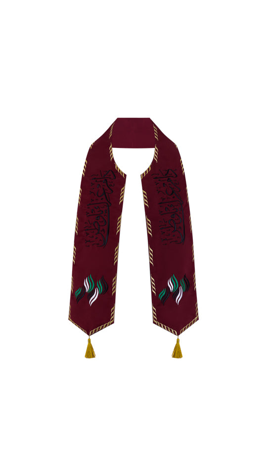 - Detail: Shawl embroidered with the phrase (Damma Azak Ya Watan). Golden Tarboush