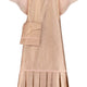 A-line long dress and round neck, organza half cloche sleeves have a slit. Body of the dress is designed with jacquard fabric and pleated bottom. Left side of the chest decorated with feathers and sequins. Have a jacquard fabric bag.