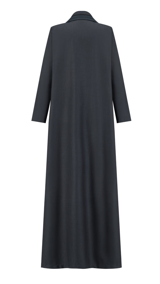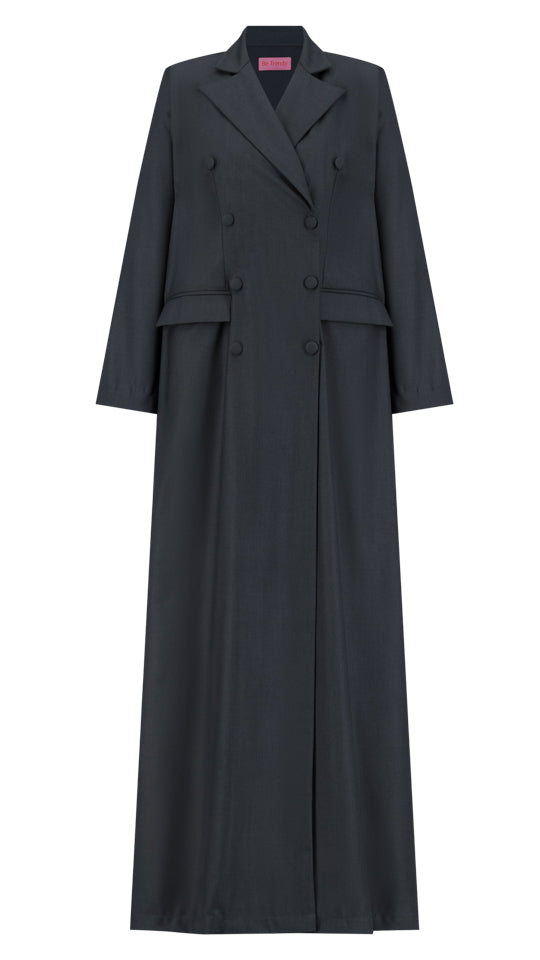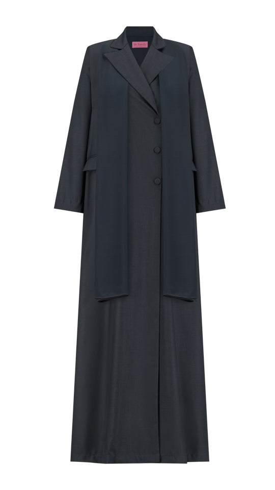 Introducing our elegant A-line long abaya ensemble, a perfect blend of timeless grace and contemporary style. This exquisite outfit features a gracefully designed abaya with a sophisticated V-shaped collar neck, adding a touch of classic charm to your attire. Underneath the abaya, you'll discover a simple yet stylish top with a modest V-shaped neck. The top is sleeveless, ensuring comfort while maintaining a refined look. The abaya, on the other hand, boasts full-length sleeves, providing coverage and sophistication. What sets this ensemble apart are the meticulously placed buttons and flap pockets on both sides of the abaya. These buttons and pockets not only enhance the visual appeal but also offer practicality and convenience. They add a touch of uniqueness to the overall design.