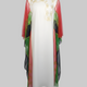 embellished with intricate Zari embroidery on the neck and cape borders, highlighted with shimmering rainbow crystals for a luxurious