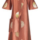 - Detail: Single pleat on the center of the dress as well as on the sleeves, dress embellished with half circle patch overall