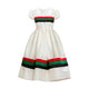 • Detail: Frock neck decorated with round crystal, front body decorated with three colors strips, down also has same strips