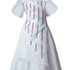 The national day dress is made of luxurious and soft off-white organza. The design is the top of splendor and beauty. The dress is in the front as an outer piece in the form of a layer with a belt that connects to the back, all decorated with high-end, luxurious, and shiny beads in the color of the flag in a harmonious way.